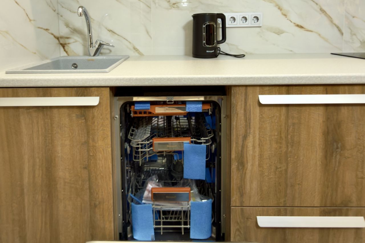 - кухонная техника( посудомоечная машина, встроенный холодильник, духовой шкаф с функцией СВЧ) ,
