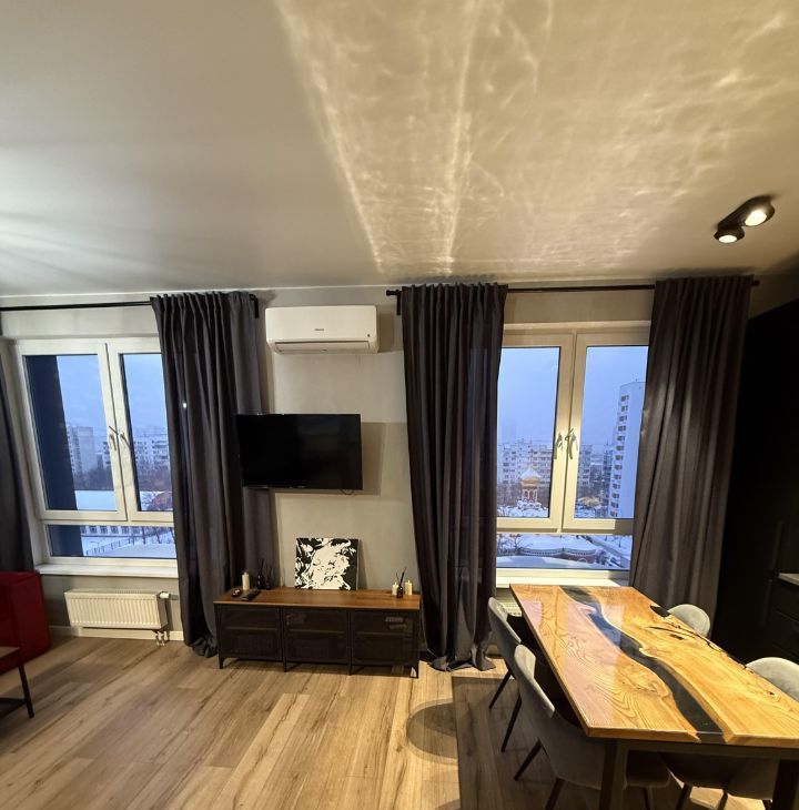 Сдаётся стильная студия в современном апарт-комплексе, расположенном всего в 8 минутах пешком от метро Марьина Роща. Общая площадь квартиры составляет 37.3 кв. м, из которых 20 кв. м — жилая площадь. Студия находится на 8-м этаже 10-этажного монолитного дома, построенного в 2020 году. Высокие потолки (3 метра) и окна, выходящие на улицу, создают ощущение пространства и света.