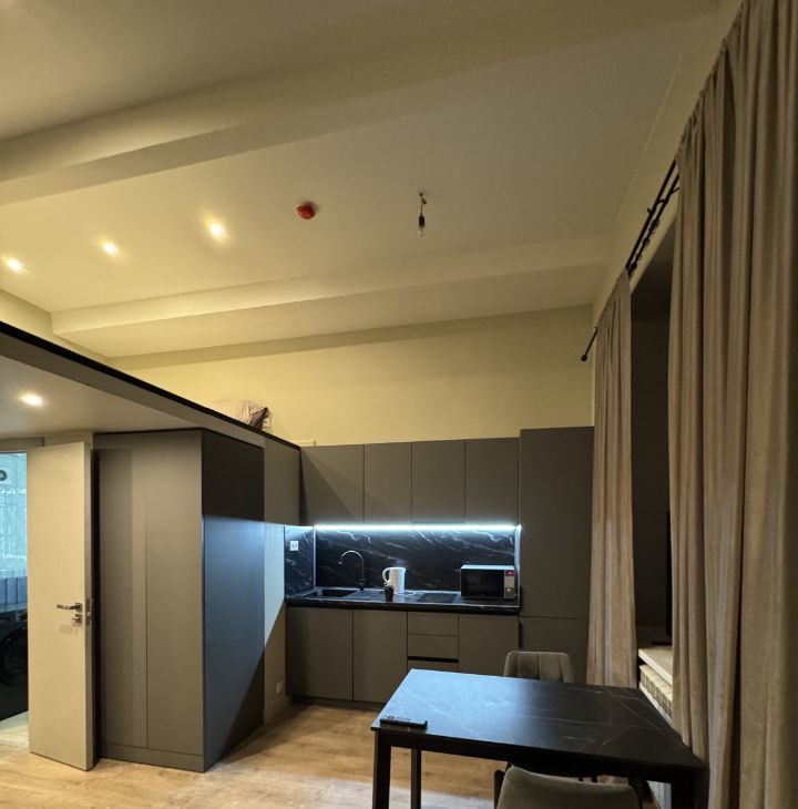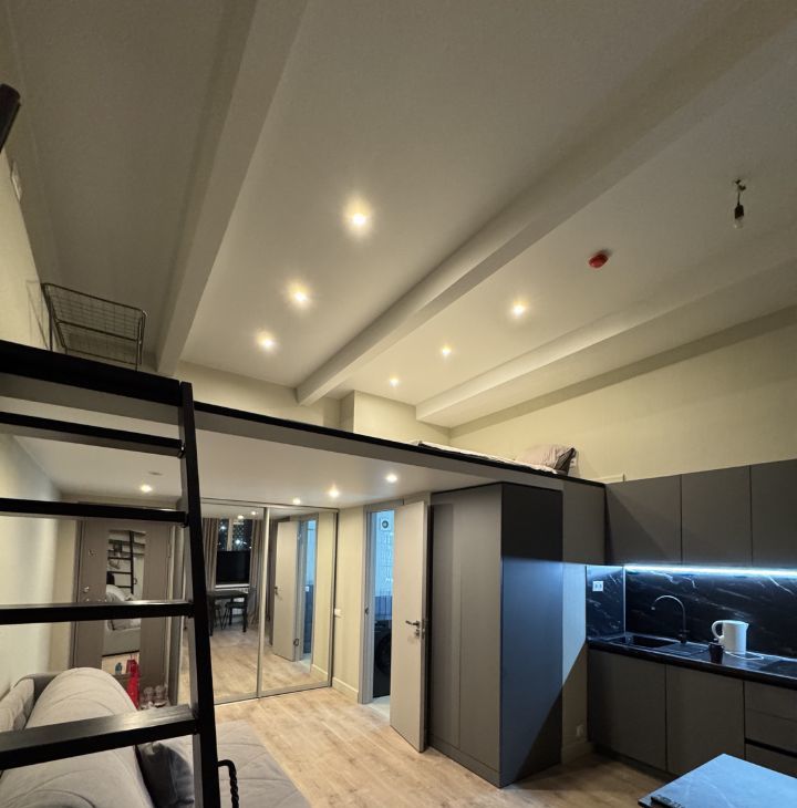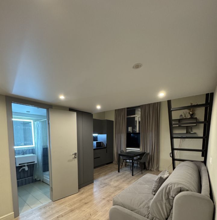 Сдается двухуровневая студия с новым дизайнерским ремонтом в комплексе ЛОФТ на Шереметьевской 85.