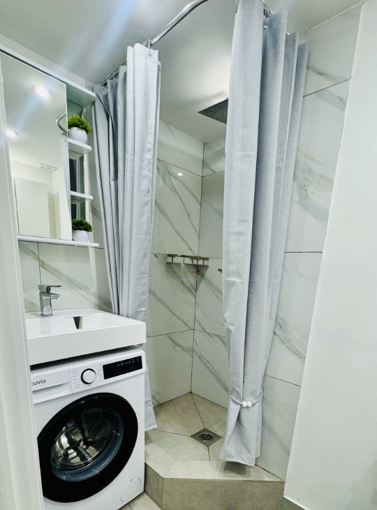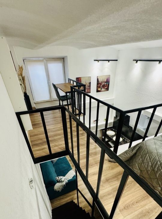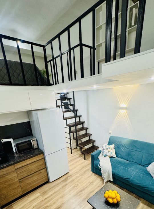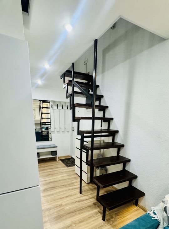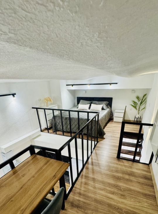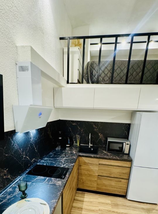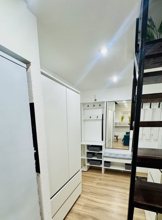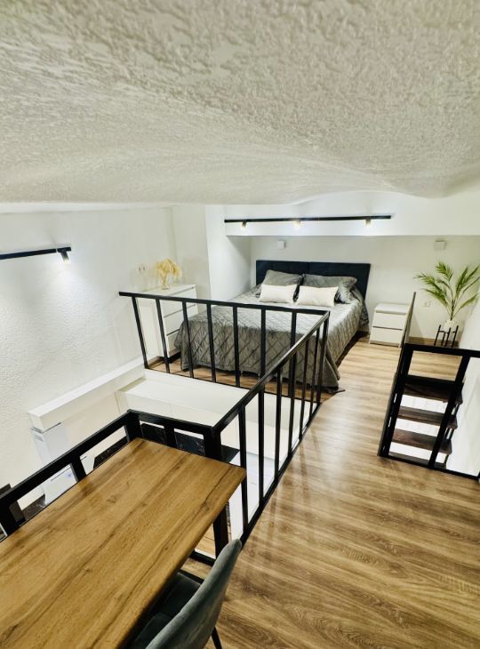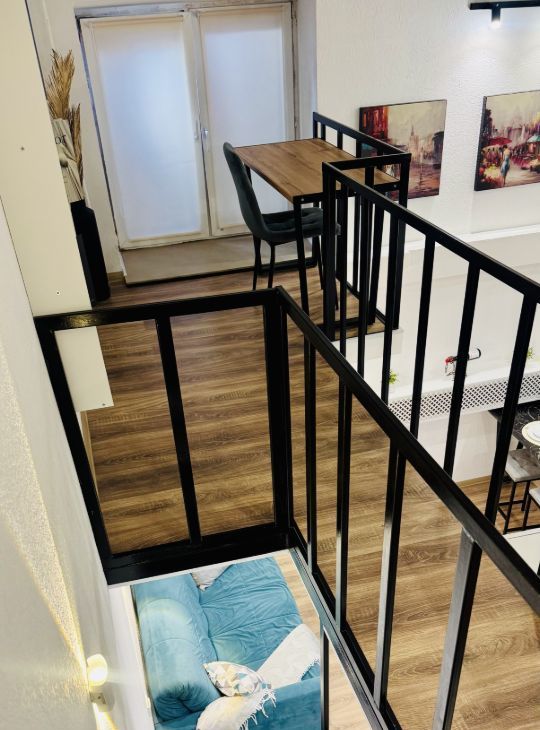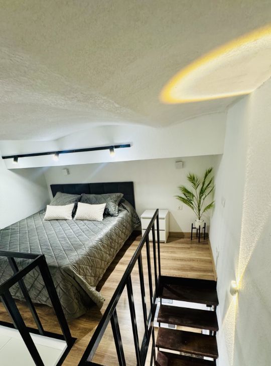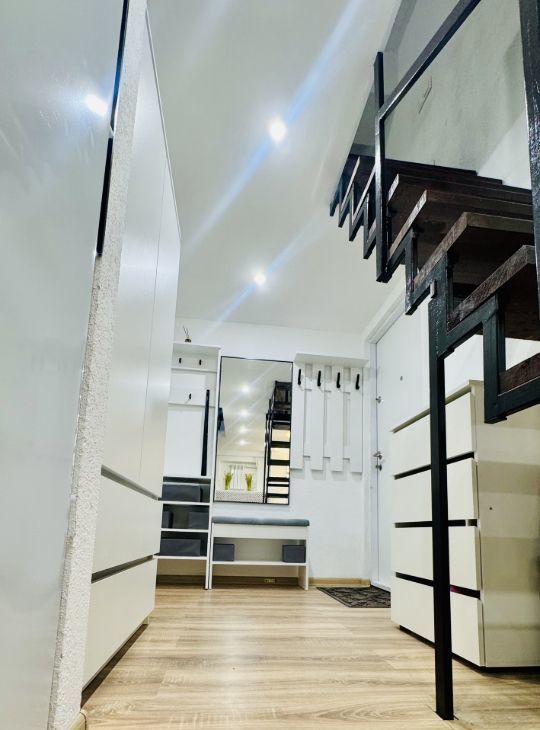 Апартаменты имеют высокие потолки, расположены на цокольном этаже многоквартирного дома. Пространство разделено на две функциональные уровни, что создает ощущение лофта и приватности одновременно. Никто не жил до вас — вы будете первыми!
