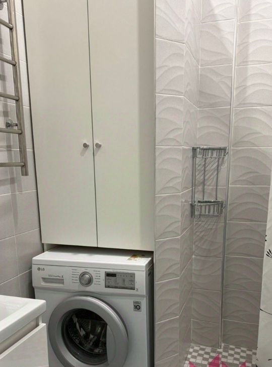 - Очень светлый и вместительный кухонный гарнитур. Встроенная техника: варочная панель, микроволновая печь, посудомойка, вытяжка и холодильник!
