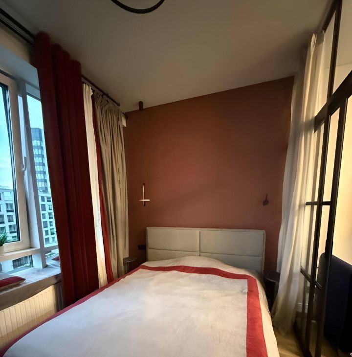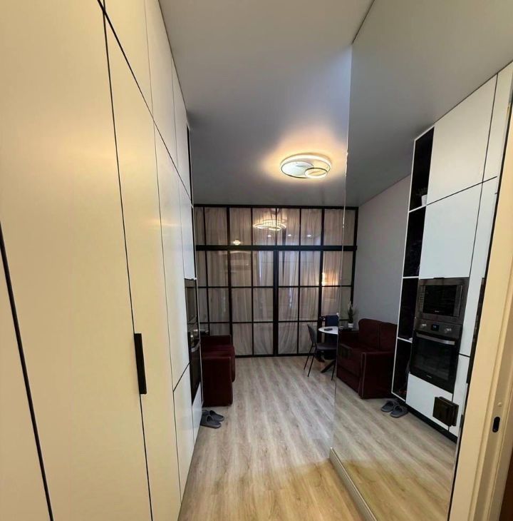 Жк Бизнес класса ! Жк Хедлайнер ( Headliner) . Студия с отдельным зонированием спальни. Окна выходят в тихий двор . В ванной комнате пол с подогревом, на случай отключения воды есть боллер , посудомоечная машина , красный раскладной диван , телевизор со Смарт ТВ . Много мест для хранения одежды и тому подобное. Можно арендовать подземную парковку . Депозит можно разделить на два месяца.