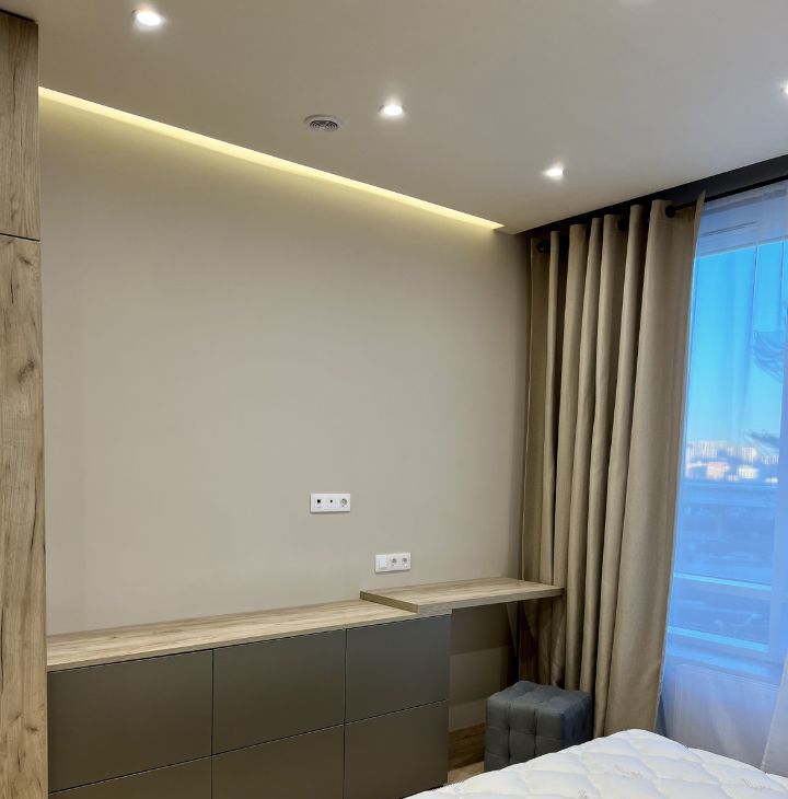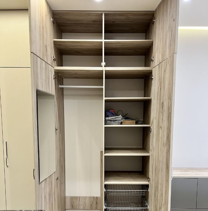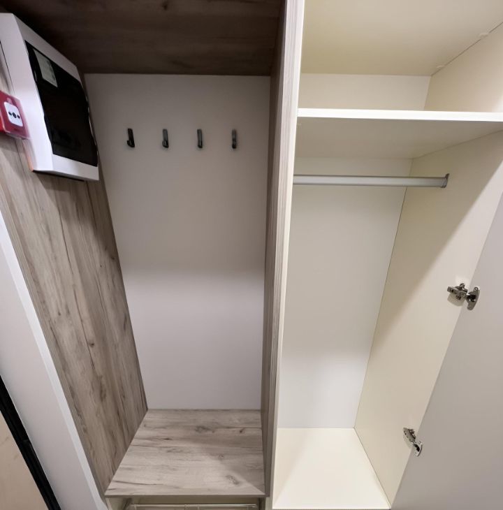 В квартире сделан современны ремонт, предусмотрено много места для хранения одежды.
