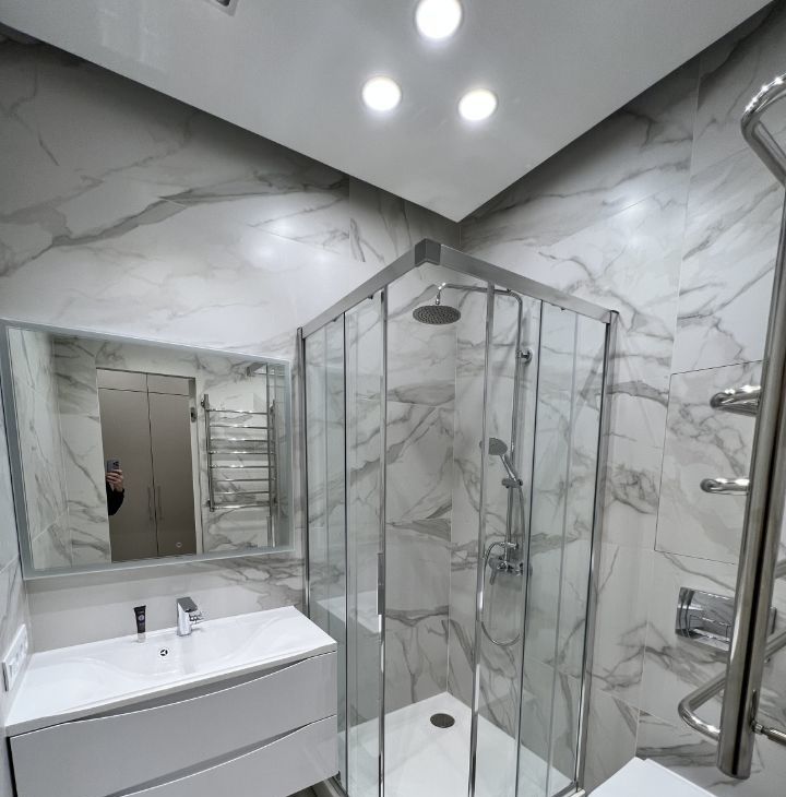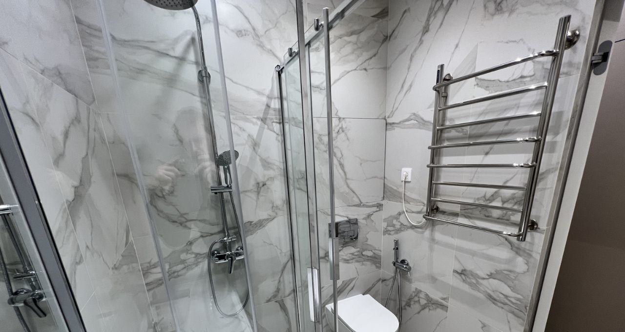 Ванная комната оборудована душевой кабиной.