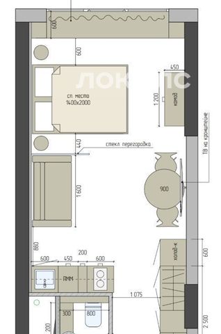 Просторная студия включает в себя светлую спальню с рабочей зоной, уютную гостиную, оборудованную техникой кухню и санузел с душевой.