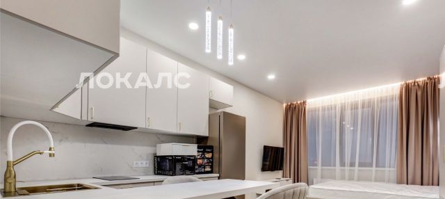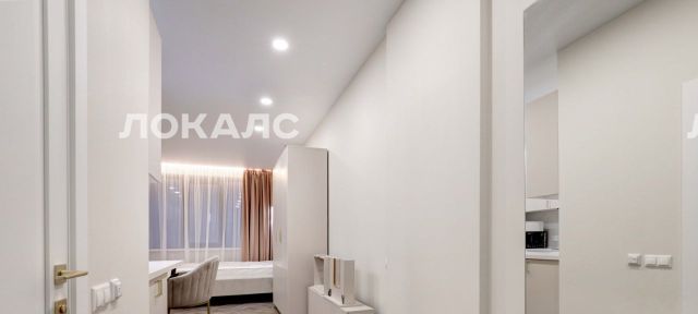 В ЖК Headliner предлагается квартира - студия с ремонтом в современном стиле. Планировка: зона кухни, спальня, ванная комната. Высота потолков составляет 3.1м. Из окон квартиры открывается вид на Москва-Сити.