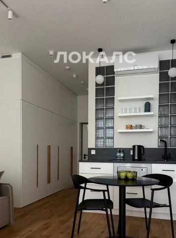 Квартира полностью укомплектована и сдается с мебелью (кухня, вместительный шкаф (выполнены на заказ), диван, комод, обеденная группа (стол, стулья), кровать, журнальный столик) и бытовой техникой (встроенные холодильник и СВЧ, кондиционер, стиральная машина, индукционная варочная панель, фильтр очистки воды, чайник).