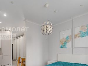Просторная студия включает в себя светлую спальню с рабочей зоной, уютную гостиную, оборудованную техникой кухню и санузел с душевой.
