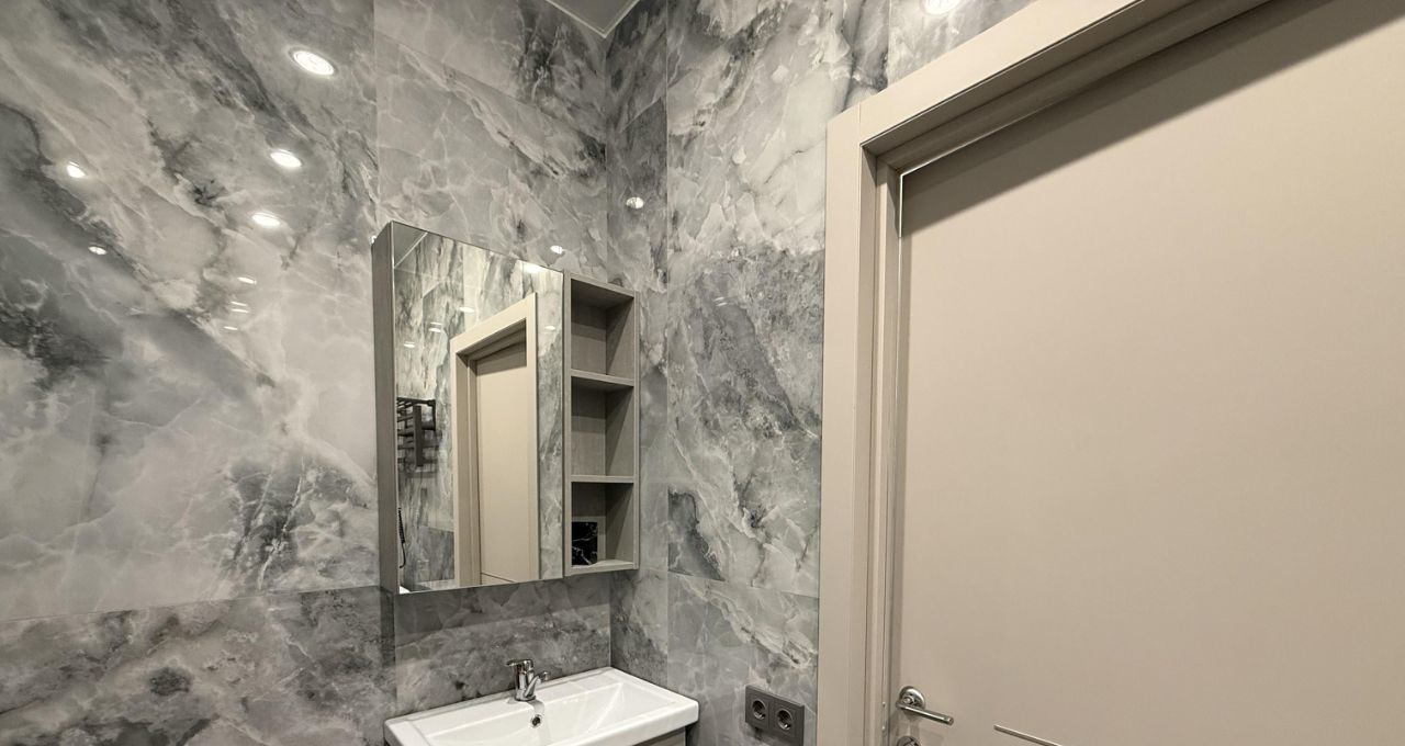 Квартира радует дизайнерским ремонтом и продуманной планировкой. Здесь есть все необходимое для комфортного проживания: удобная мебель на кухне и в жилой зоне, а также полный набор современной техники: кондиционер, холодильник, посудомоечная машина, телевизор и стиральная машина. Ванная комната оборудована душевой кабиной, что особенно удобно для быстрого принятия водных процедур.