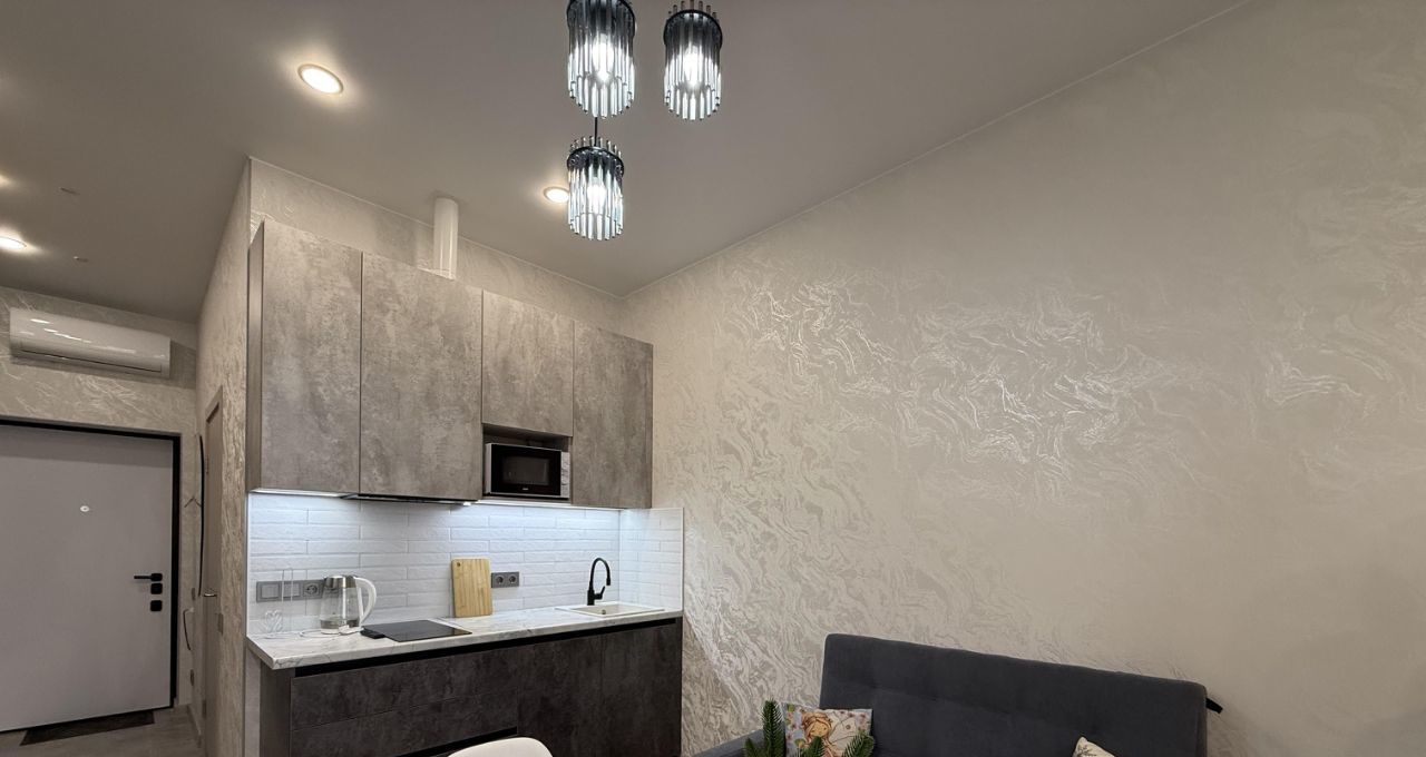 Предлагаем вам в аренду стильную студию в современном жилом комплексе, расположенном всего в 5 минутах ходьбы от станции метро Шелепиха. Квартира находится на 20-м этаже 51-этажного дома, построенного в 2025 году. Общая площадь квартиры составляет 30 кв. м, из которых 18 кв. м отведено под жилую зону. Высокие потолки (3 метра) и окна, выходящие на улицу, создают ощущение простора и света.