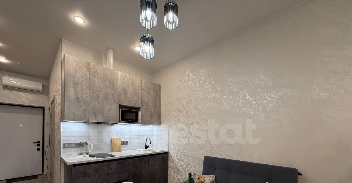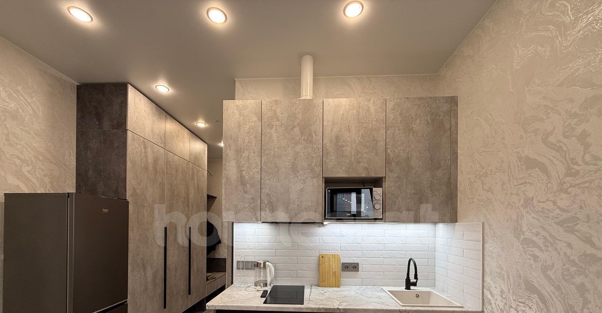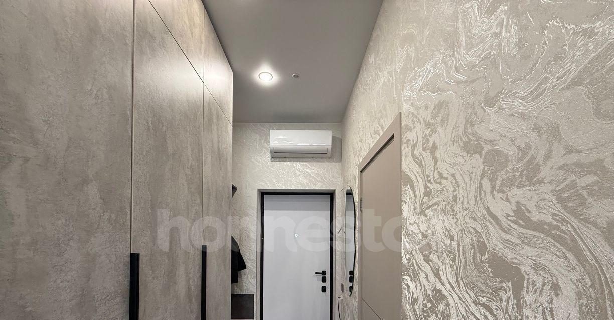 Предлагаем вам в аренду стильную студию в современном жилом комплексе, расположенном всего в 5 минутах ходьбы от станции метро Шелепиха. Квартира находится на 20-м этаже 51-этажного дома, построенного в 2025 году. Общая площадь квартиры составляет 30 кв. м, из которых 18 кв. м отведено под жилую зону. Высокие потолки (3 метра) и окна, выходящие на улицу, создают ощущение простора и света.