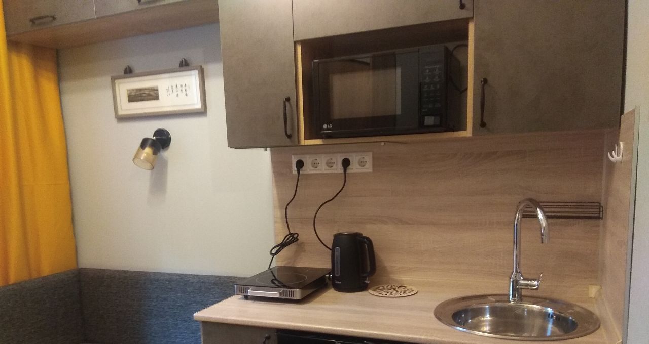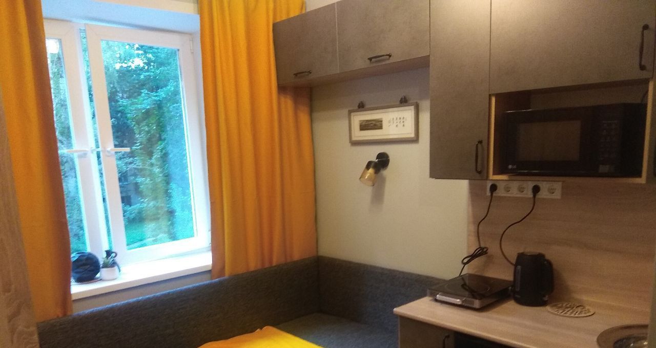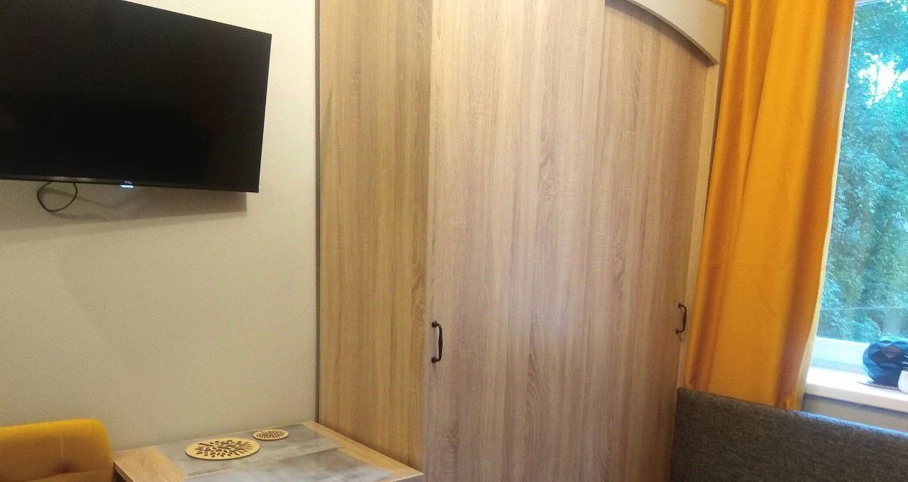 Компактная студия 11м2в новом апарт-комплексе, вся мебель и техника новые, окна в зелёный двор. Имеется все необходимое: стиральная машина, холодильник, плитка, микроволновка, телевизор, утюг. Много мест для хранения: большой шкаф (215х120), ниша под тахтой (200х120), 2 шкафчика в ванной.