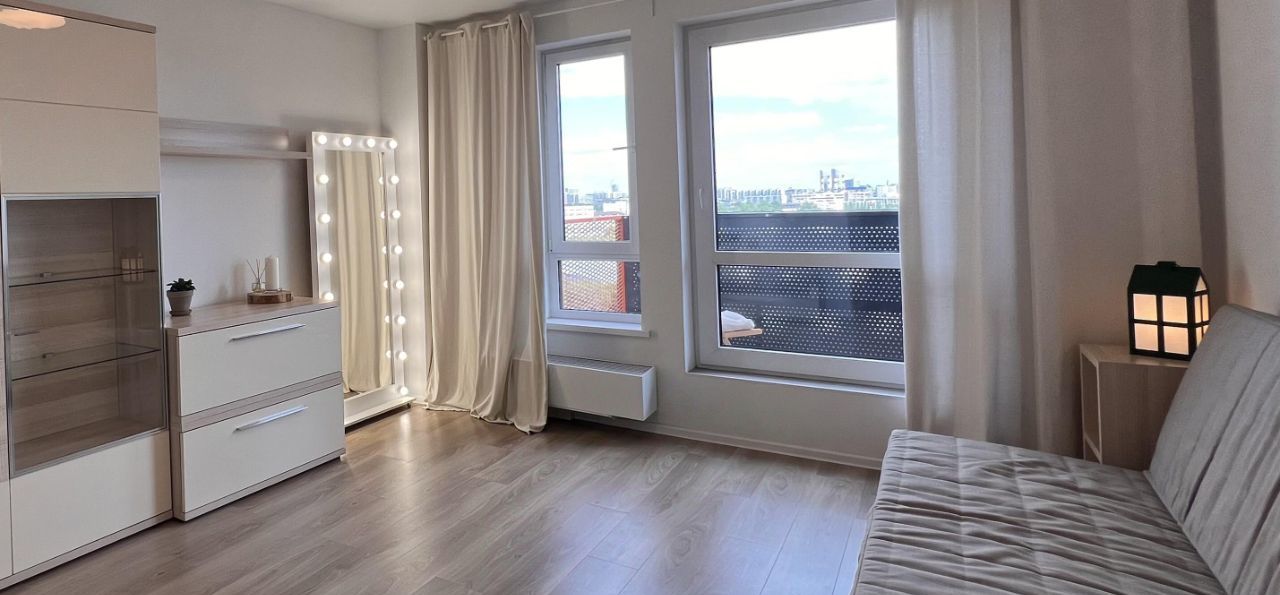 Предлагаем в аренду уютную студию в новом доме на Складочной улице, 6к4. Квартира расположена на 13-м этаже 14-этажного панельного дома, построенного в 2021 году. Общая площадь квартиры составляет 24 кв. м, из которых жилая — 11 кв. м, а кухня — 10 кв. м. Современный евроремонт и продуманная планировка создают атмосферу комфорта и уюта.