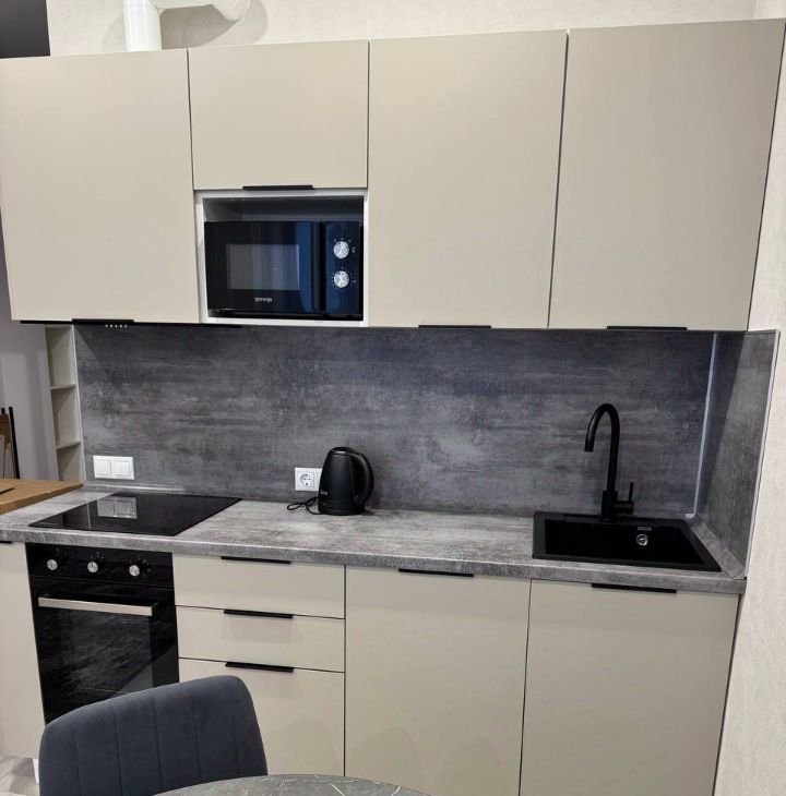 Кухня оснащена всем необходимым: современный гарнитур, холодильник, посудомоечная машина, электрическая плита, чайник, микроволновая печь. Полный набор посуды.