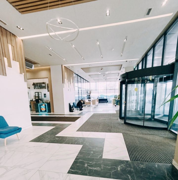 - Презентабельная входная группа с кафе и зонами ожидания.
