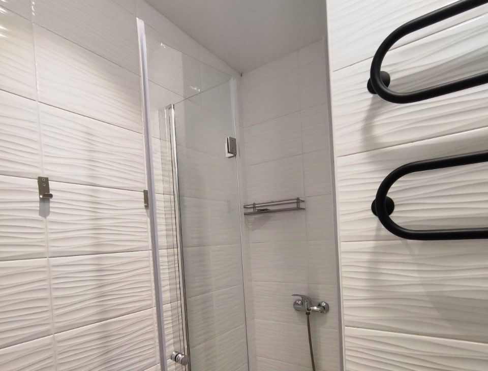 Санузел совмещённый: душ, раковина, унитаз, зеркало с подсветкой