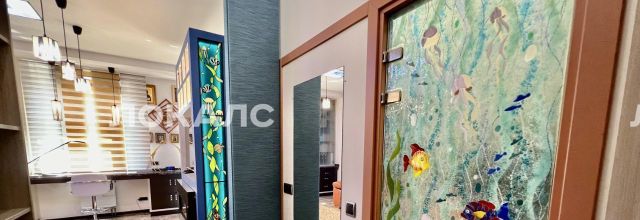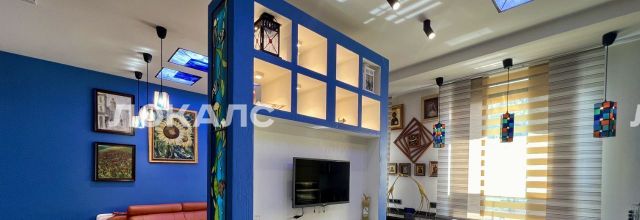 Высокие потолки увеличивают пространство, наполняя квартиру светом. Для комфортного проживания имеется двуспальный диван, эко камин, грамотно организована рабочая зона, обеденное пространство с барной стойкой, гардеробная комната, просторный санузел.