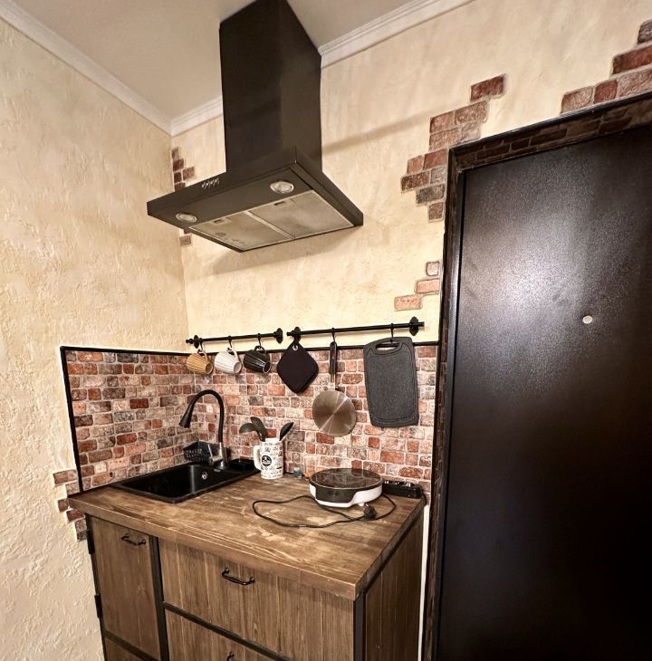 В студии, есть все для комфортного проживания: диван-кровать, холодильник, плита, стир.машина, утюг.