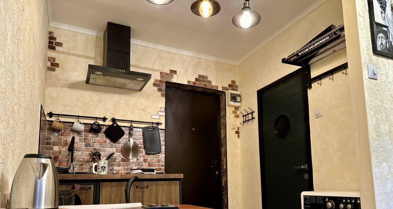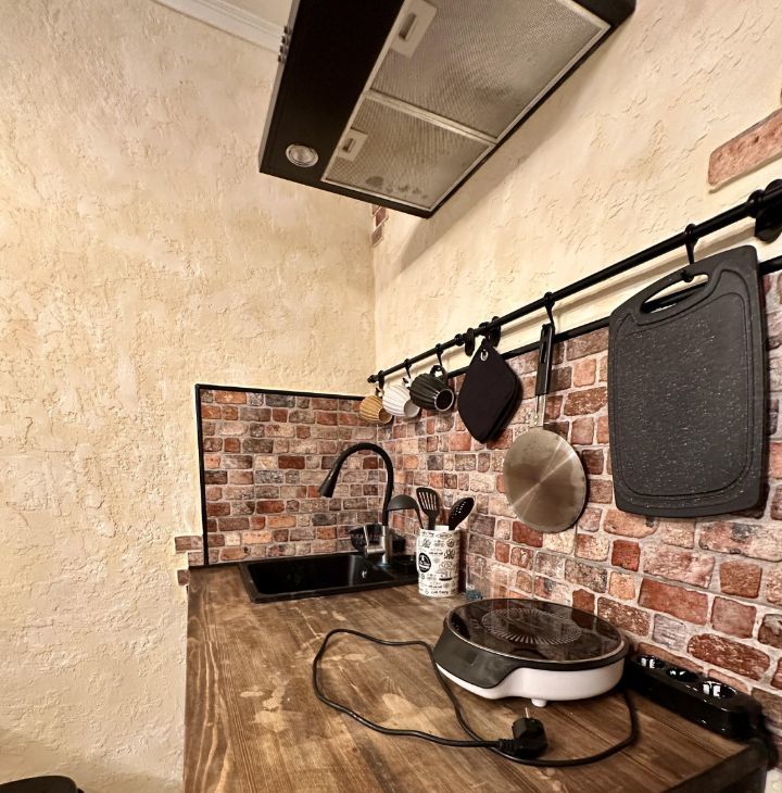 В студии, есть все для комфортного проживания: диван-кровать, холодильник, плита, стир.машина, утюг.