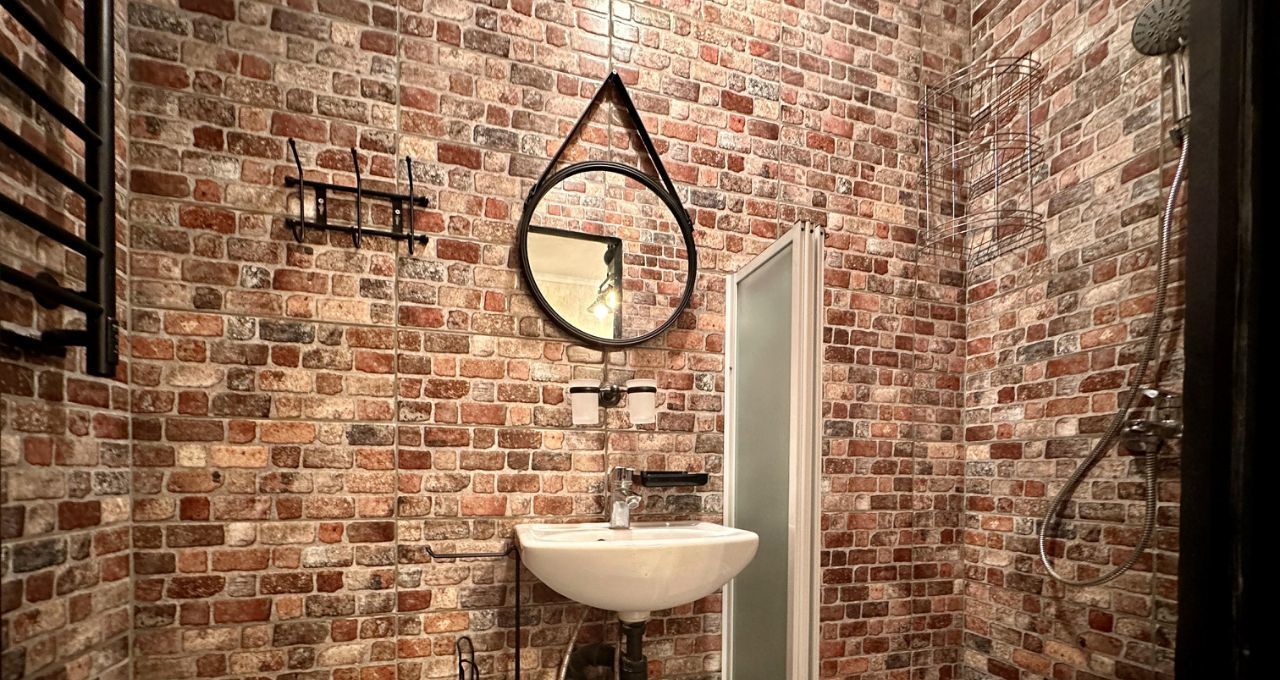 Квартира расположена на цокольном этаже кирпичного дома в историческом районе