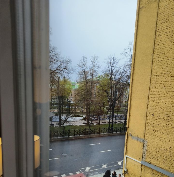 Потолки 4.70 м, на втором этаже больше двух метров. Из окна видно Страстной бульвар.