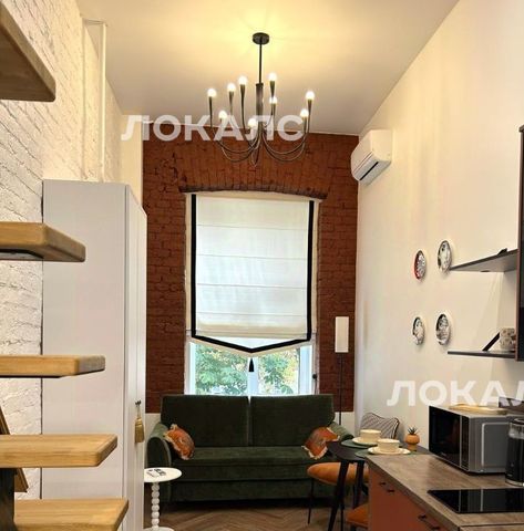 Уникальная квартира-студия расположена в историческом месте: постройка ХlХ века, бывший доходный дом Редлиха. Квартира имеет 2 отдельных входа/выхода: через большую парадную на Страстной бульвар и в тихий двор с уютным кафе.