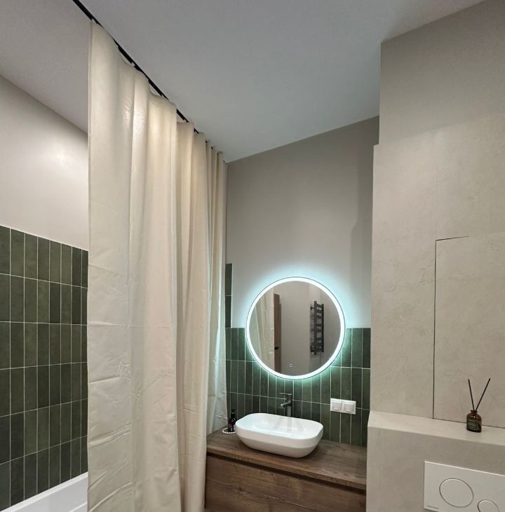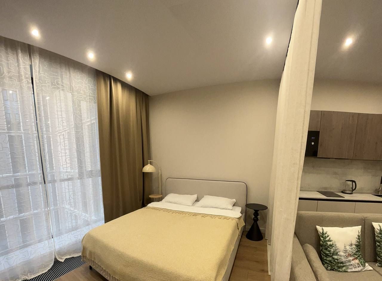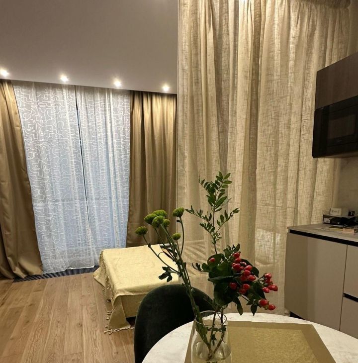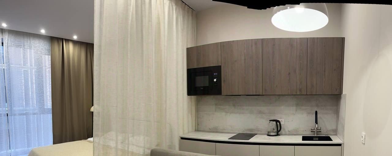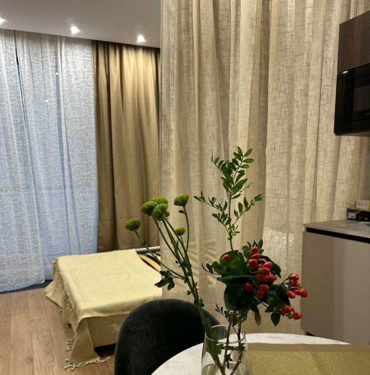 Зона спальни отделяется от кухонной зоны шторой. Так же имеется рабочее место , телевизор диагональ 55 и интернет.