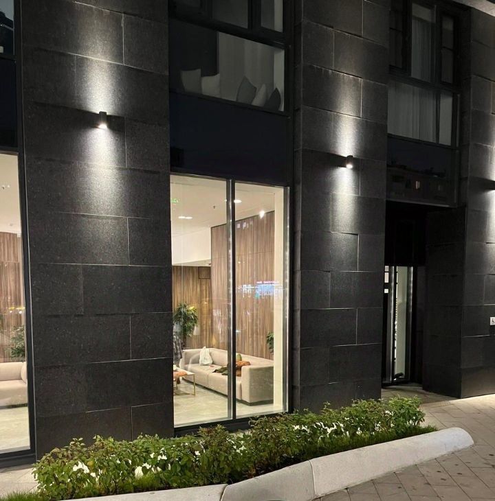 В доме находится Вкусвилл и несколько кафе и кофеен.