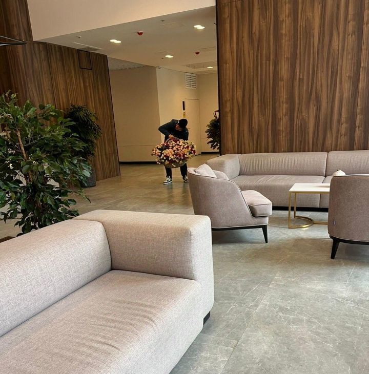 Дом премиум класса, в лобби массажное кресло, в котором можно бесплатно расслабиться после рабочего дня.