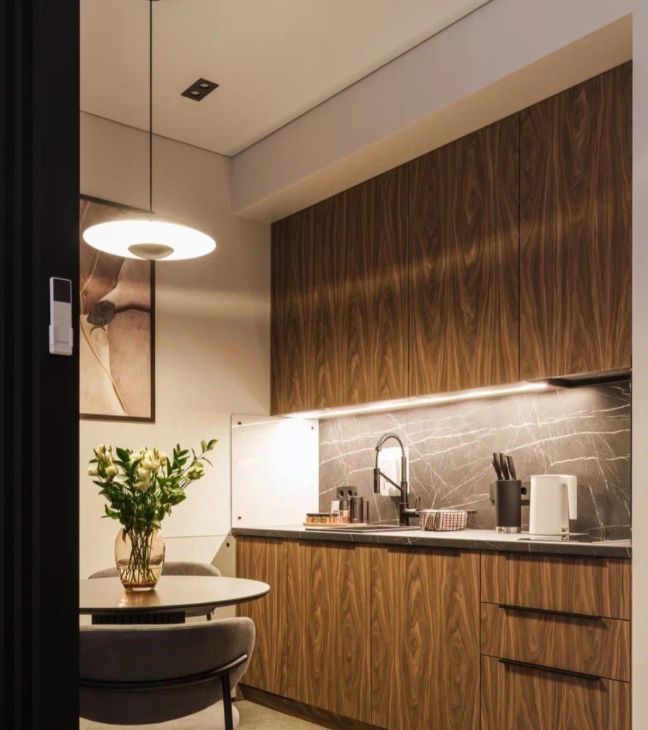 В студии выполнен стильный дизайнерский ремонт из дорогостоящих и экологичных материалов. Пространство тщательно продумано: установлена современная комфортная мебель ,множество подсветок, управление умный дом Алиса, система кондиционирования, тёплый пол.В наличии вся необходимая техника: кондиционер, холодильник, посудомоечная машина, телевизор и стиральная машина,варочная панель ,вытяжка, фильтр с питьевой водой,накопительный водонагреватель, гигиенический душ. В ванной комнате установлена душевая кабина.Множество мест для хранения . Широкий мягкий подоконник.
