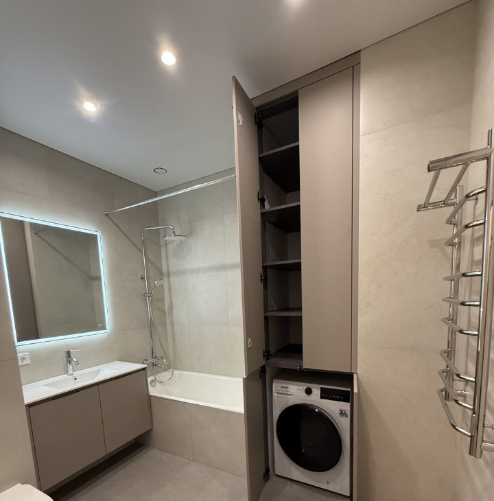 • Совмещенный санузел с ванной, гигиенический душ, стиральная машина с сушкой.