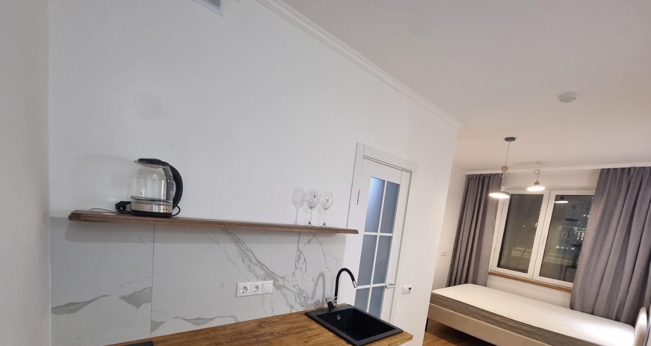 Район с развитой инфраструктурой: в шаговой доступности метро, парк, пруд, сквер, торговые центры и тп. Это делает студию удобной для проживания.