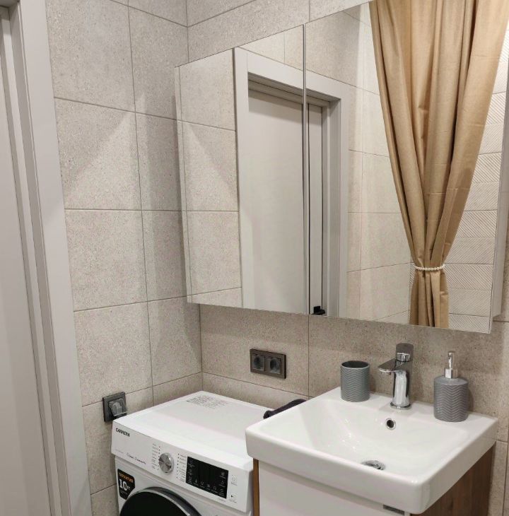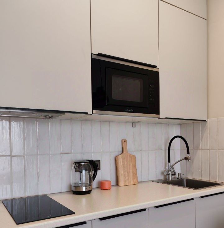 Полностью оборудована всей необходимой бытовой техникой: варочная панель, микроволновка, холодильник, посудомоечная машина, стиральная машина, кондиционер, робот-пылесос, фен, утюг, телевизор, подключенный интернет, теплые полы. Все приборы новые и находятся в исправном рабочем состоянии.