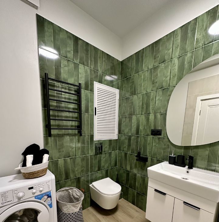 - санузел (большая ванная 170, где можно расслабиться после рабочего дня, стиральная машина, электрический полотенцесушитель, гладильная доска, отпариватель и сушка для белья).