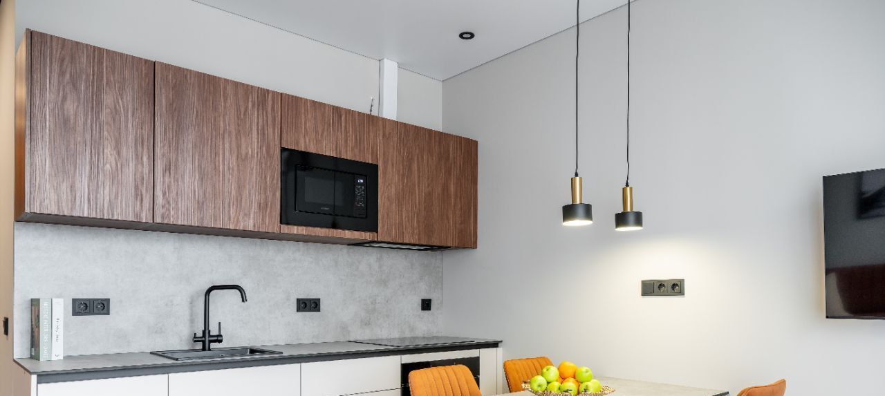 Ремонт выполнен с учётом эргономики, что обеспечивает удобный доступ ко всем зонам и продуманную систему хранения. Квартира идеально подойдёт для проживания семейной пары или для тех, кто ценит комфорт и эстетичную, вдохновляющую обстановку.