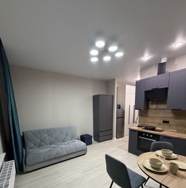 Сдаётся уютная студия в новом современном доме, построенном в 2024 году. Общая площадь квартиры составляет 27 кв. м, из которых 20 кв. м - жилая зона и 3 кв. м занимает кухня. Квартира расположена на 16-м этаже 25-этажного здания. Высокие потолки 2.8 метра и большие окна, выходящие на улицу, создают ощущение простора и света.