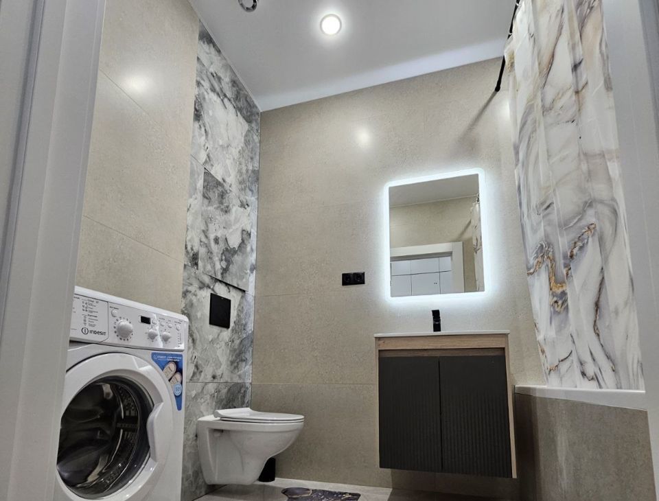 Квартира с евроремонтом и полностью готова к проживанию. Здесь есть вся необходимая мебель как в комнате, так и на кухне. Ванная комната оснащена ванной, что особенно удобно для расслабления после насыщенного дня. Из техники у вас будет в распоряжении кондиционер, холодильник, телевизор и стиральная машина, что делает проживание максимально комфортным.