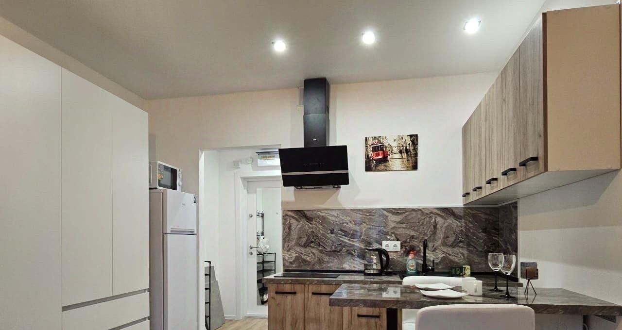 Квартира оформлена с дизайнерским ремонтом, что создает особую атмосферу комфорта и уюта. В студии есть все необходимое: на кухне и в комнате установлена мебель, а также имеется стиральная машина. Ванная комната оборудована душевой кабиной. Подключен интернет, поэтому вы всегда будете на связи.