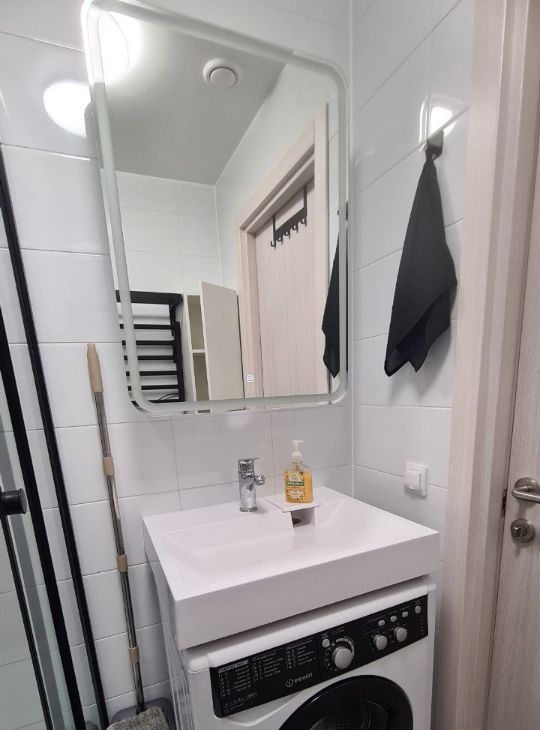 В квартире сделан современный ремонт, есть вся необходимая мебель. Из техники в вашем распоряжении кондиционер, холодильник, телевизор и стиральная машина.