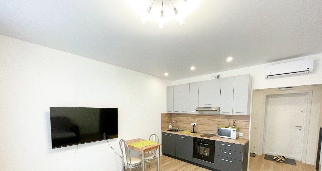 Сдаётся уютная квартира-студия с евроремонтом и совмещённым санузлом в ЖК Открытый парк. Без депозита!