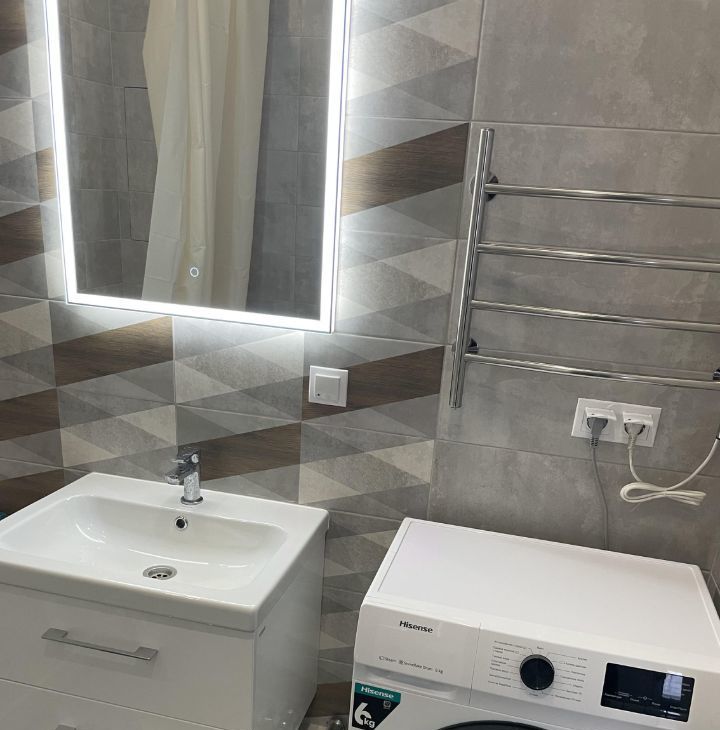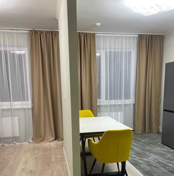 В квартире выполнен качественный евроремонт. Студия полностью меблирована: есть все необходимое как на кухне, так и в жилой зоне. Из техники в вашем распоряжении холодильник и стиральная машина. Ванная комната оборудована ванной, а окна выходят на улицу, что обеспечивает хорошее естественное освещение.
