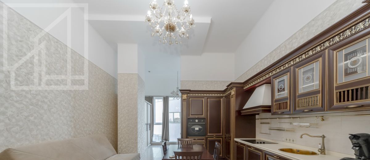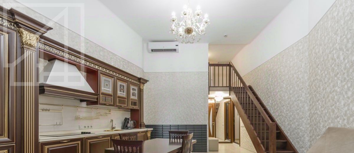 Планировка: кухня, спальня, совмещенный санузел с джакузи. Есть гардеробная комната. Высота потолков 4 м. Ремонт в уникальном авторском стиле. Квартира полностью меблирована, оснащена всей необходимой бытовой техникой для комфортного проживания.