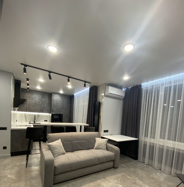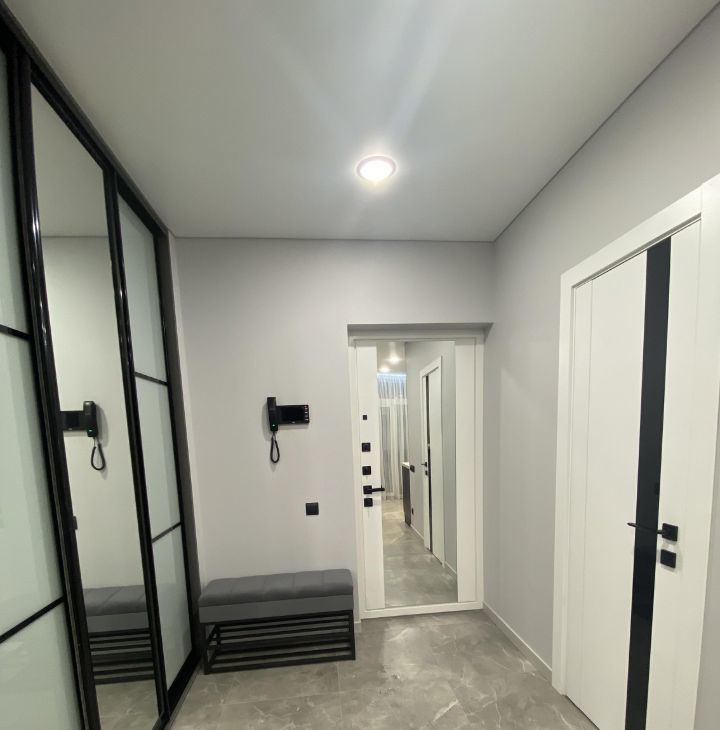 От метро 5 мин пешком. В квартире дизайнерский евро ремонт. Все делали для себя с использованием дорогих строительных материалов и дорогой сан техники. Вся мебель встроенная. Бытовая техника тоже встроенная. Бытовая техника самых лучших брендов. Система Умный дом. Освещение очень красивое, с разными подсветками. Есть лоджия. В сан узле- душевая кабина. Много места для хранения вещей. Спальное место-удобный диван-трансформер. Оборудовано рабочее место. Есть кондиционер. Есть полы с подогревом.