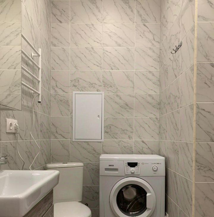 Есть все необходимое для комфортного проживания - кухня со всей техникой (холодильник, электрическая плита, стиральная машина), шкаф для одежды, двуспальная кровать, совмещенный санузел.