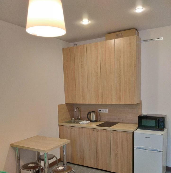 Внутри выполнен косметический ремонт, есть вся необходимая мебель как в комнате, так и на кухне.
