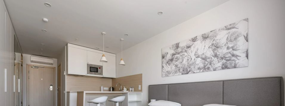 Апартамент оснащен всем необходимым для комфортного проживания, полностью укомплектован мебелью и бытовой техникой. На территории комплекса есть круглосуточный консьерж-сервис, кофейня, ресторан, зона коворкинга, фитнес-клуб и торговая галерея.
