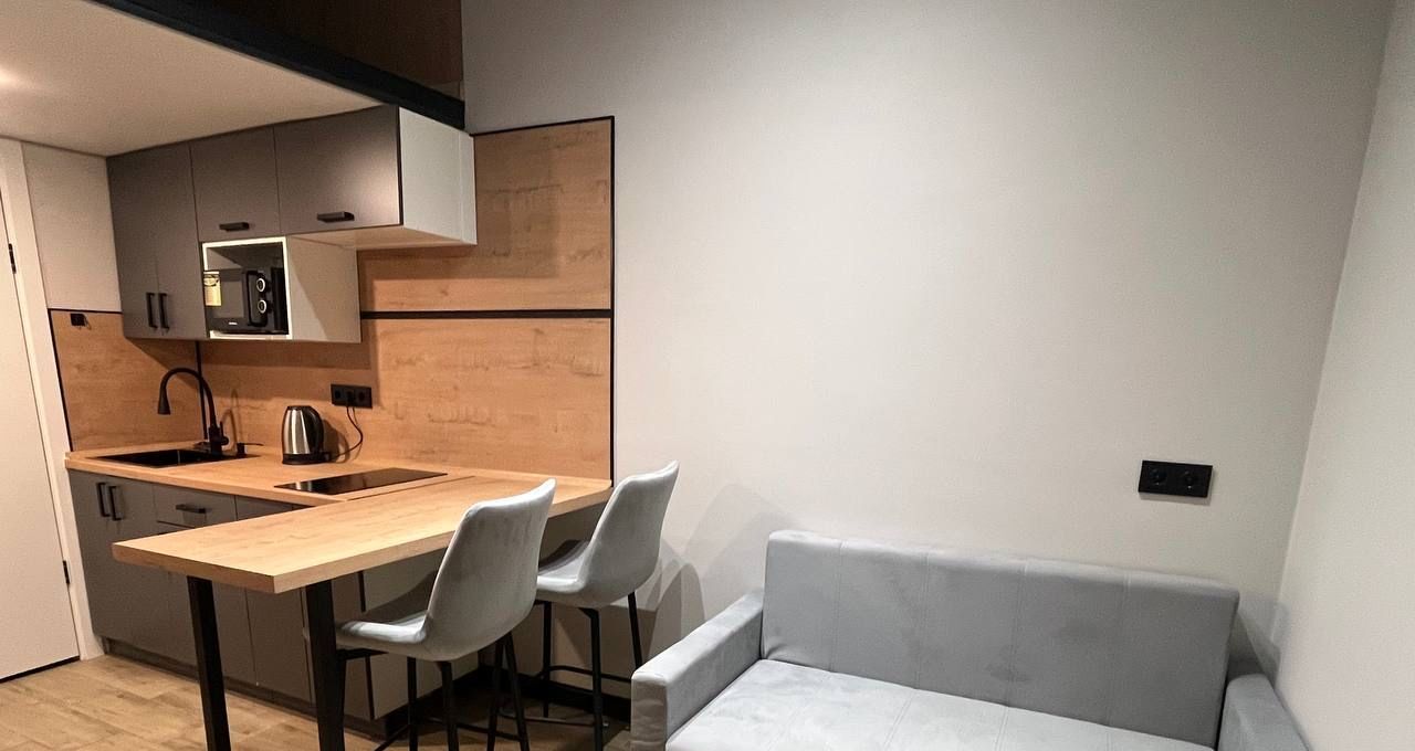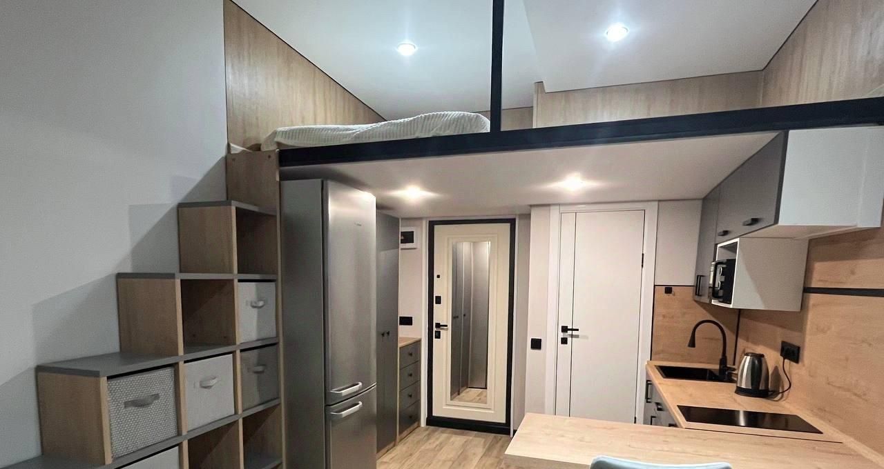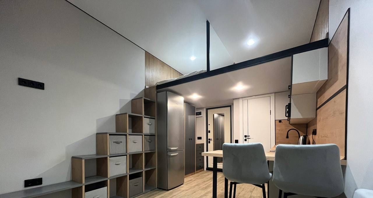 Сдается двухуровневая студия с абсолютно новым ремонтом. Студия расположена на цокольном этаже жилого дома (над ней также жилая квартира). Есть окно.