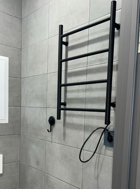 Ванная комната оборудована душевым поддоном, унитазом, раковиной, полотенцесушителем.