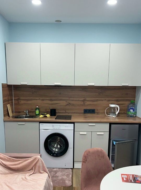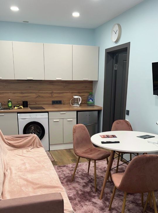 В квартире есть вся необходимая техника и мебель. Двуспальная кровать, Диван, Шкаф, обеденный стол, стулья; Кухня со встроенной бытовой техникой: встроенная варочная плита, холодильник, электрический чайник, кухонные принадлежности, телевизор, стиральная машина.