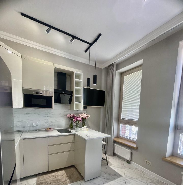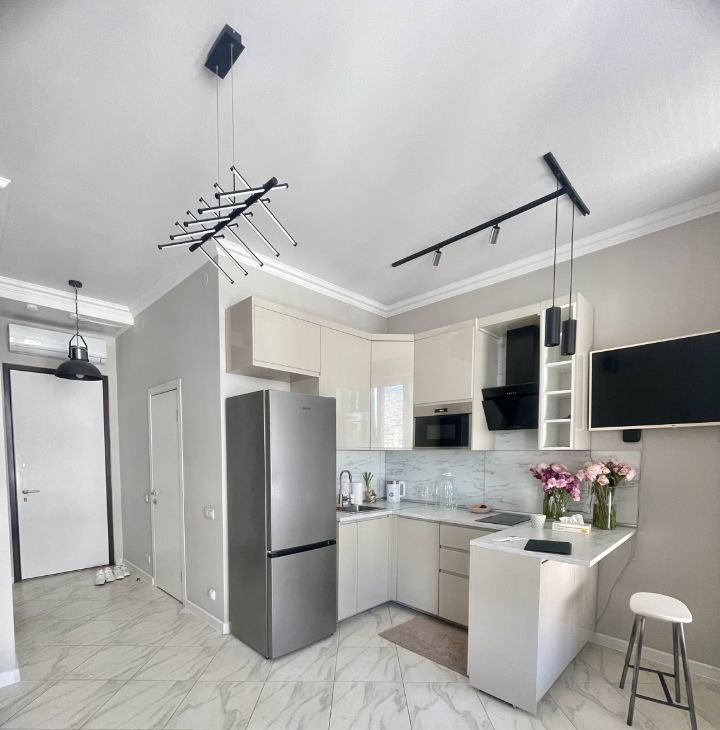 Студия с дизайнерским ремонтом и продуманной планировкой. Комната оснащена всей необходимой мебелью для комфортного проживания. Кухня оборудована современной техникой: кондиционер, холодильник, посудомоечная машина и стиральная машина. В ванной комнате установлена душевая кабина. Все детали интерьера выполнены с большим вниманием к качеству и стилю.